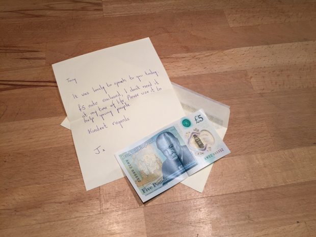 Currently we are contacting outlets connected to Children in Need to try and give this to a good cause so we honour the request of the lucky woman who originally discovered the note.